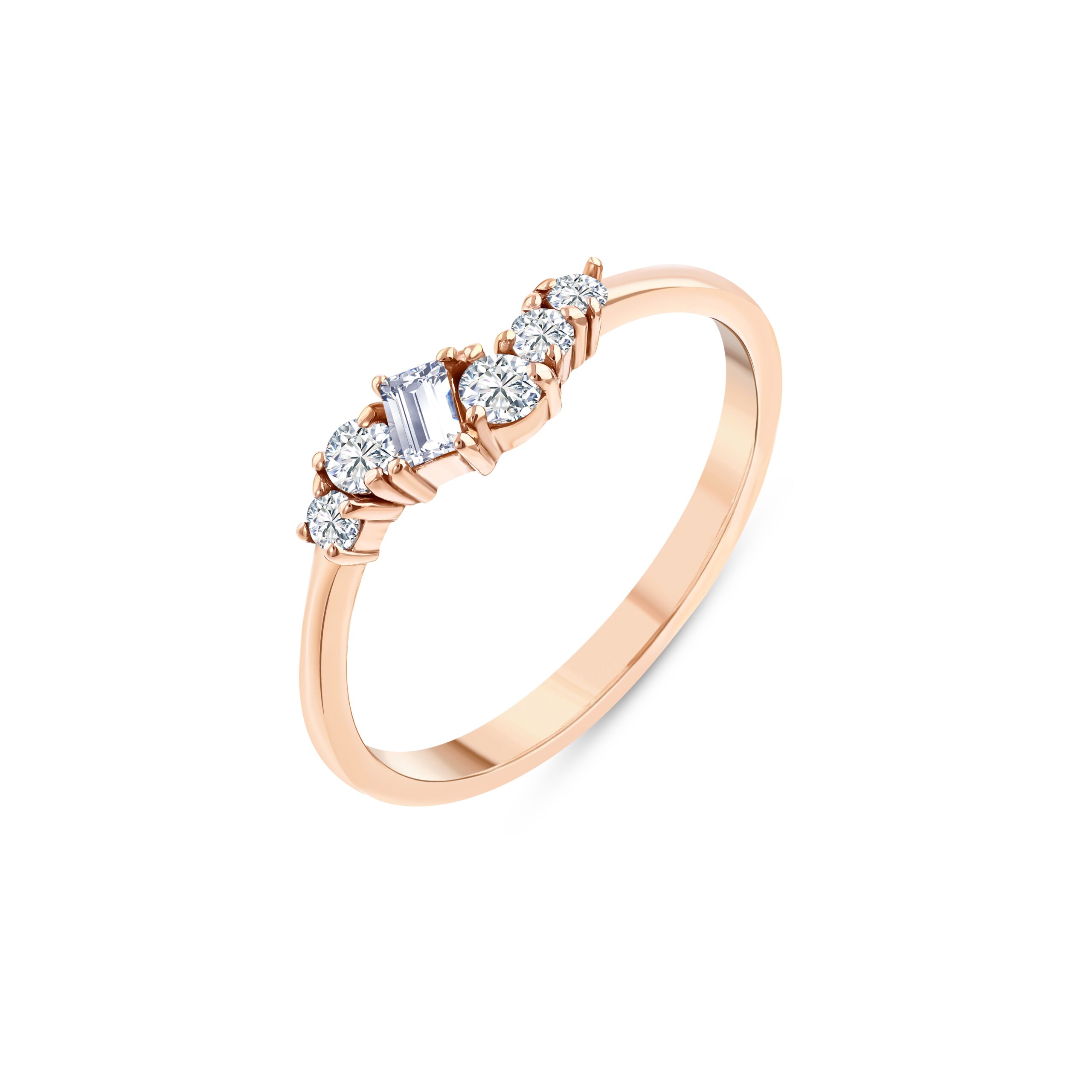 Eloria reflects the radiant spirit of the Carnaval collection. The baguette diamond at the center and the surrounding stones dance in graceful harmony like the sparkling lights of a carnival, bringing together timeless brilliance and modern elegance.